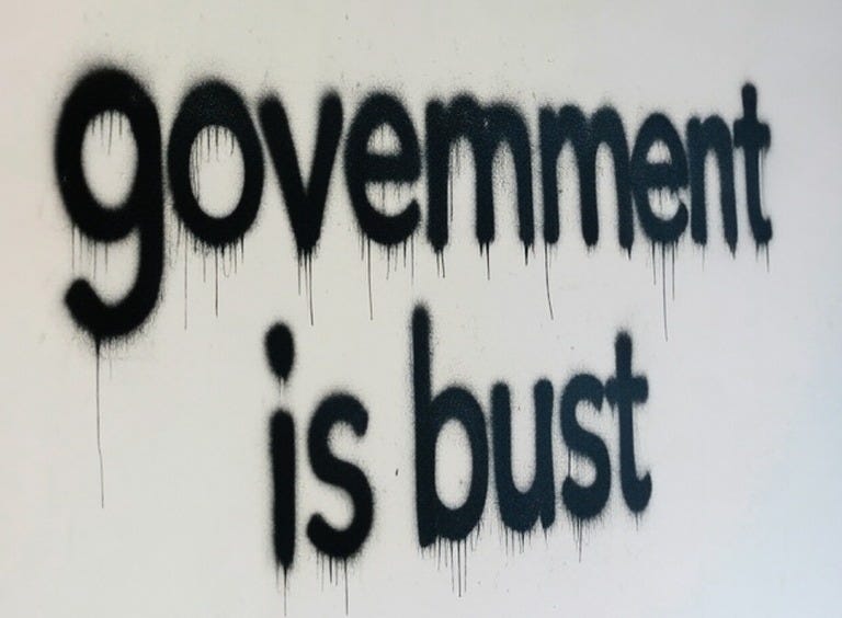 To all intents and purposes most Western governments are bust. And yet government spokespeople, and the army of hangers-on that depend on government spending, talk endlessly about sustainability. The irony is that the government, itself, is unsustainable.